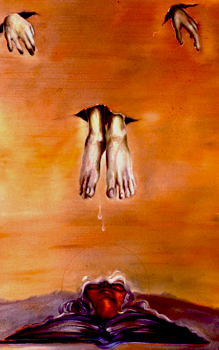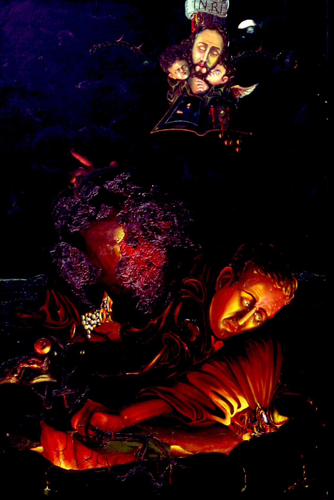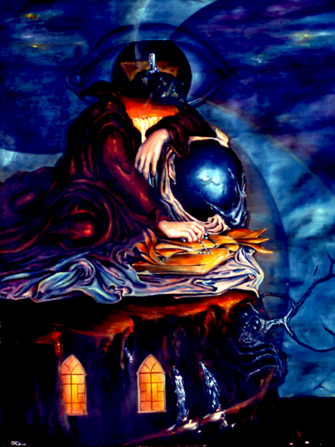 What doth it profit a man if he gains the whole world and suffers the loss of his own soul? Oil on Canvas (1975) 48 ins. x 72 ins.